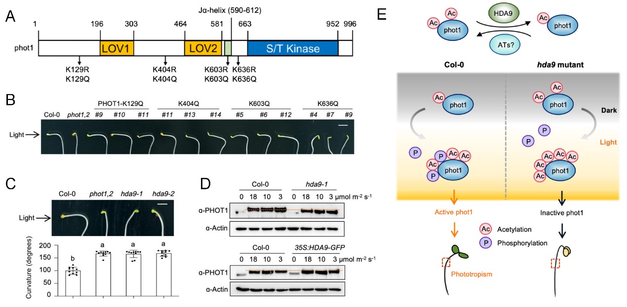 华南植物园揭示乙酰化修饰调控植物向光性分子机制
